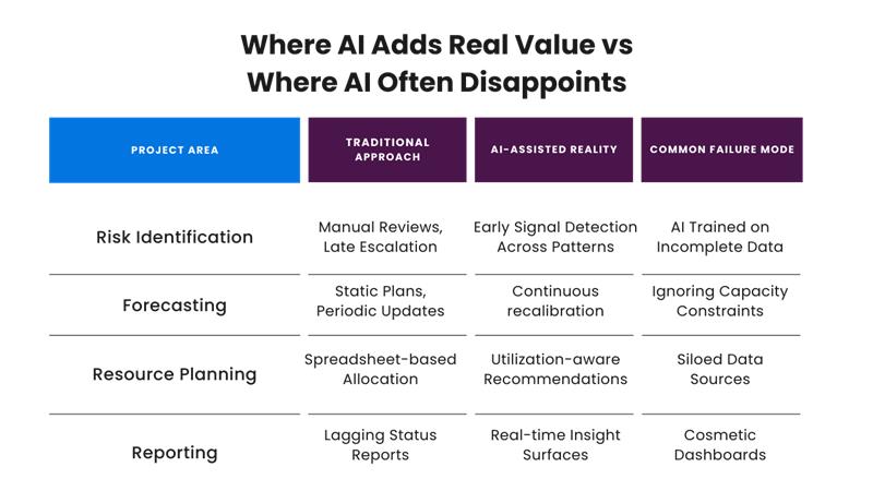 Because here’s the truth: Project management is not a clean, structured problem. It is human, probabilistic, and shaped by incentives as much as process. AI does not fix that. Used well, it reduces blind spots, surfaces risk earlier, and brings discipline to decisions that are usually made too late. The difference lies in how closely it is tied to the systems that actually run delivery.