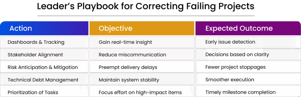 - IT leaders can fix failing projects through real-time visibility, proactive risk management, prioritization, and managing technical debt.
