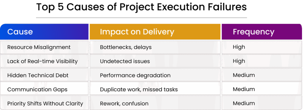 Even well-structured projects often encounter execution breakdowns. These failures are rarely random—they are symptoms of operational gaps.